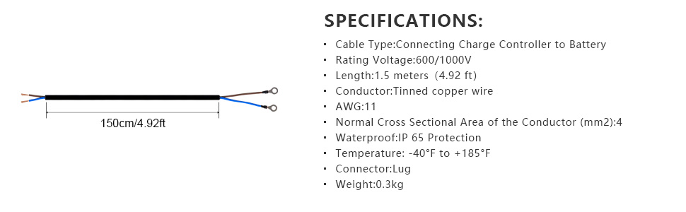 ECO-WORTHY monocrystalline solar panel is compact with enhanced aluminum frame and tempered glass. The size is 58.3*26.2*1.4 inches. IP66 class ingress-proof, strong enough to withstand strong winds (2400Pa) and snow loads (5400Pa), worry-free for outdoor uses.