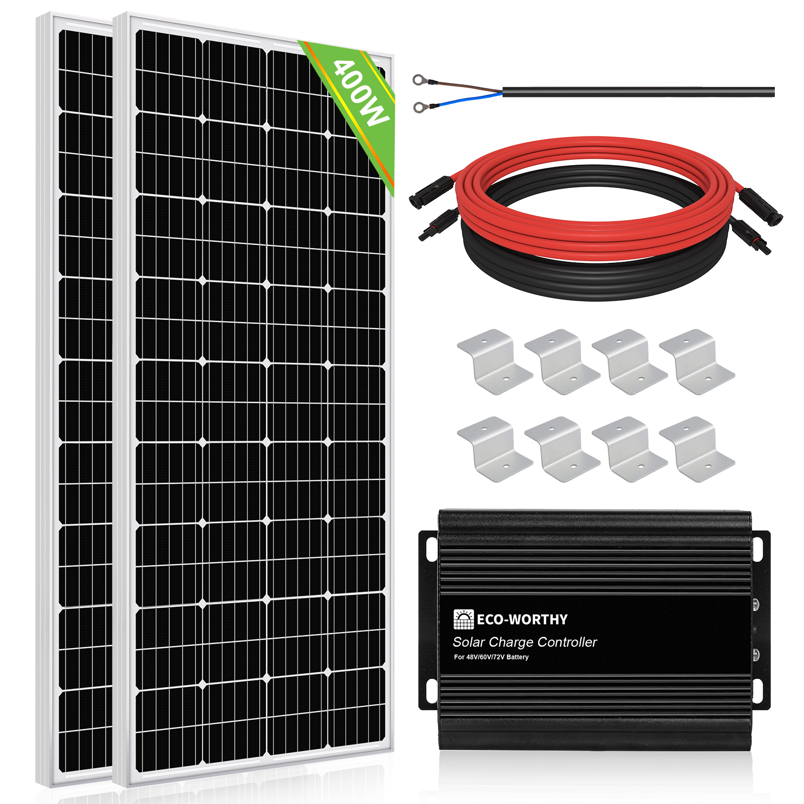 ECO-WORTHY 400W 12V Solar Kit can be used for several different purposes, including cottages, weekends, cabins, boats, RVs, Campers, etc. Whatever the kit is used for, you can rest assured that you are purchasing a quality system.