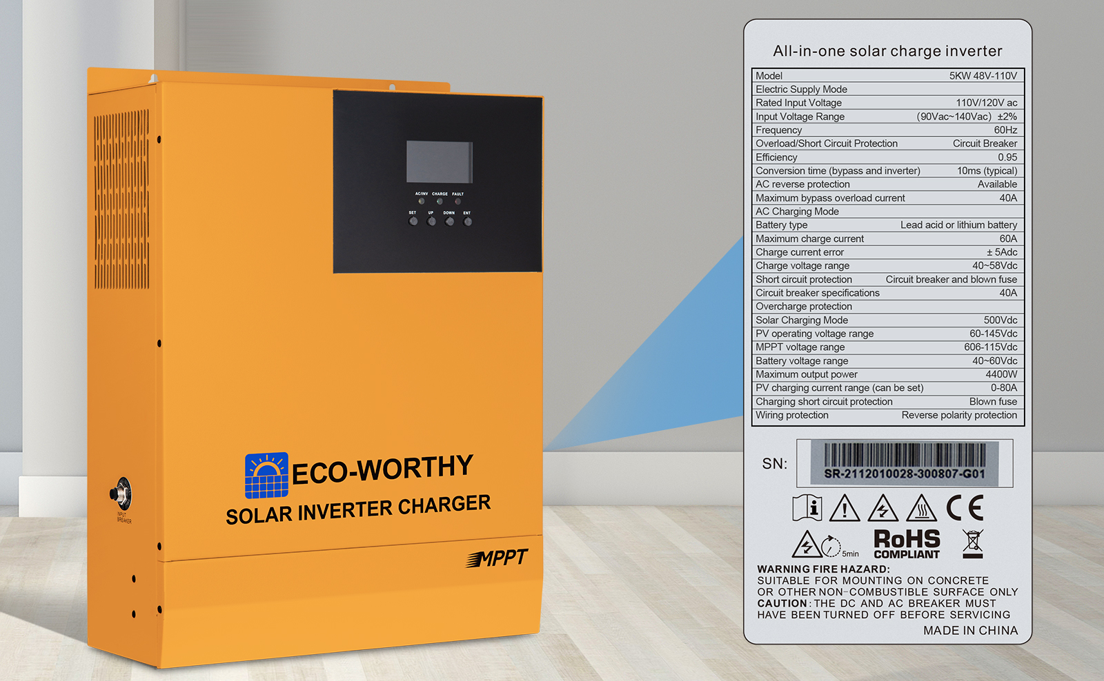 The combination of 5000W 48v DC to 110V/120V AC pure sine wave inverter and 80A MPPT controller provides stable output for your appliances, reduces the wires in your solar power, more than 95% efficiency, maximizes energy usage, and protects your battery from short circuit, overvoltage and under voltage, overload, reverse.
