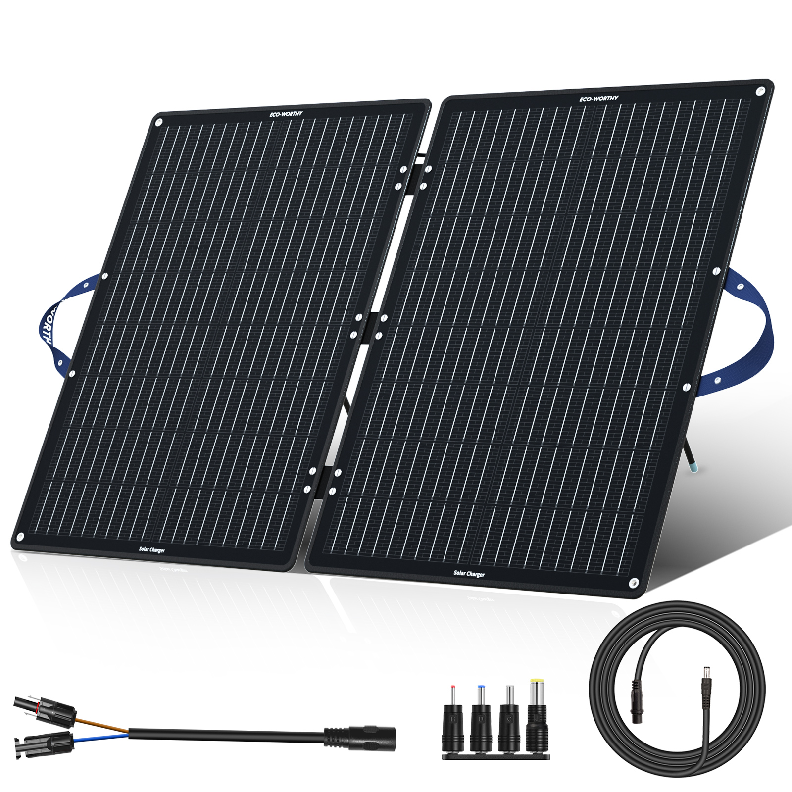 ECO-WORTHY 12V Foldable Solar Panel Suitcase is ideal for outdoor activities such as camping, climbing, hiking, picnic. Less installation space, more power for you. The foldable solar panel can even be placed under the car seat like a briefcase. It is the best solution for permanent installation of ordinary solar panels, leaving more space for your RV to store tents, kayaks and various camping equipment.