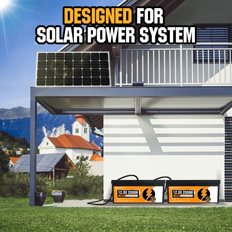 ECO-WORTHY LiFePO4 12V Lithium Iron Phosphate Battery has twice the power, half the weight, and lasts 8 times longer than a sealed lead acid battery, no maintenance, extremely safe and very low toxicity for environment. Our line of LiFePO4 offer a solution to demanding applications that require a lighter weight, longer life and higher capacity battery.12v280ah lithium battery