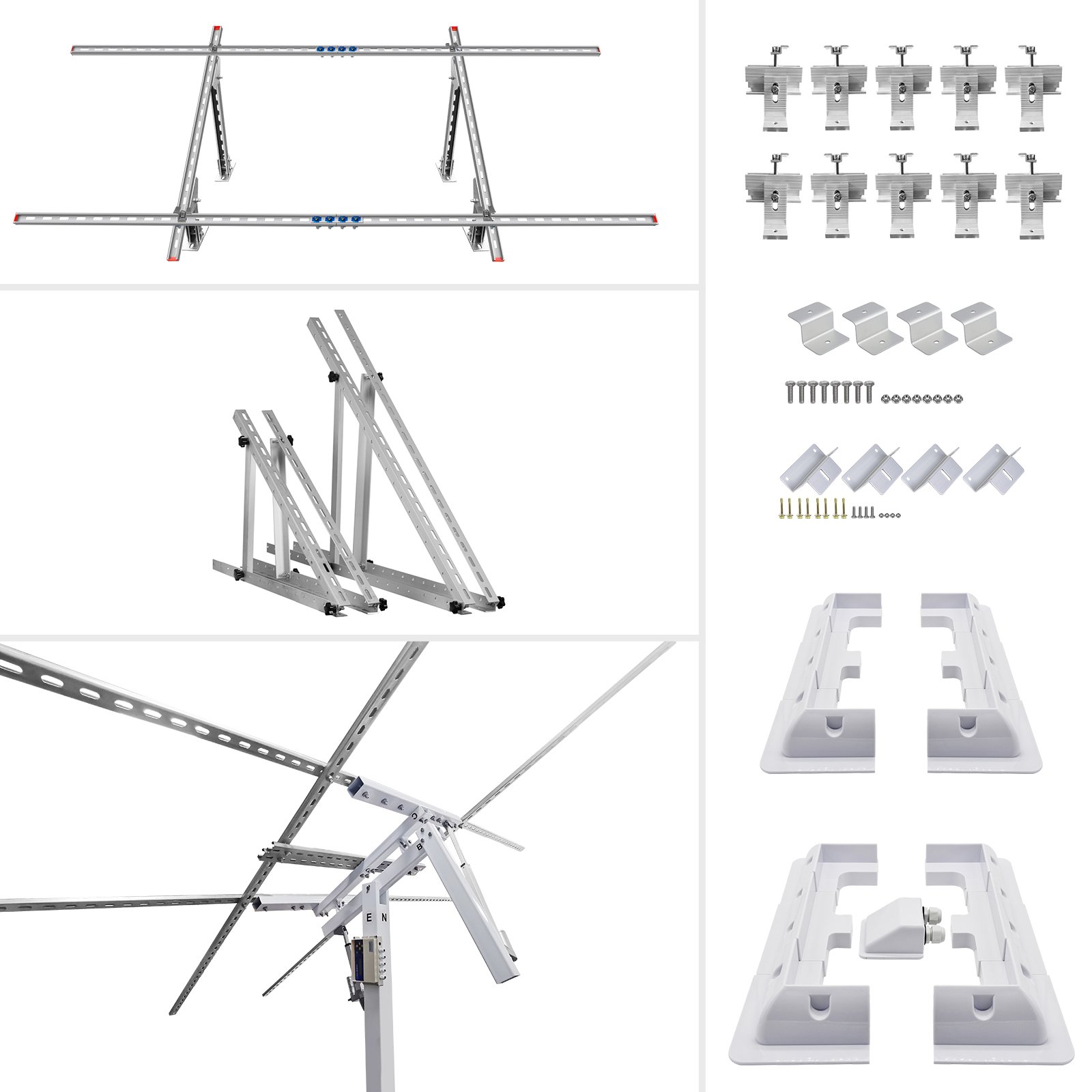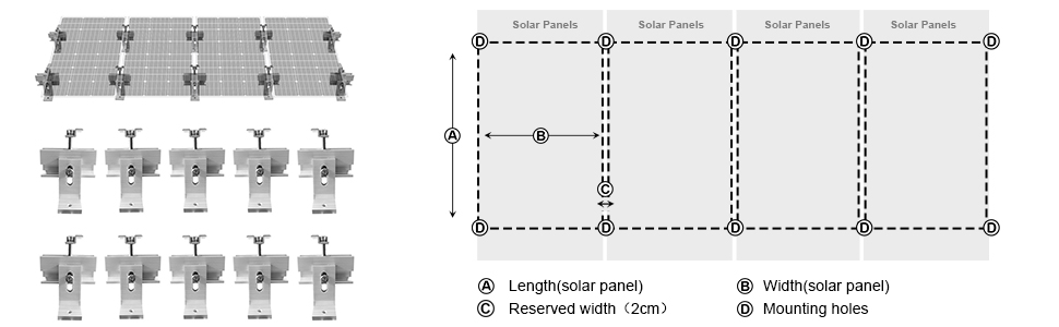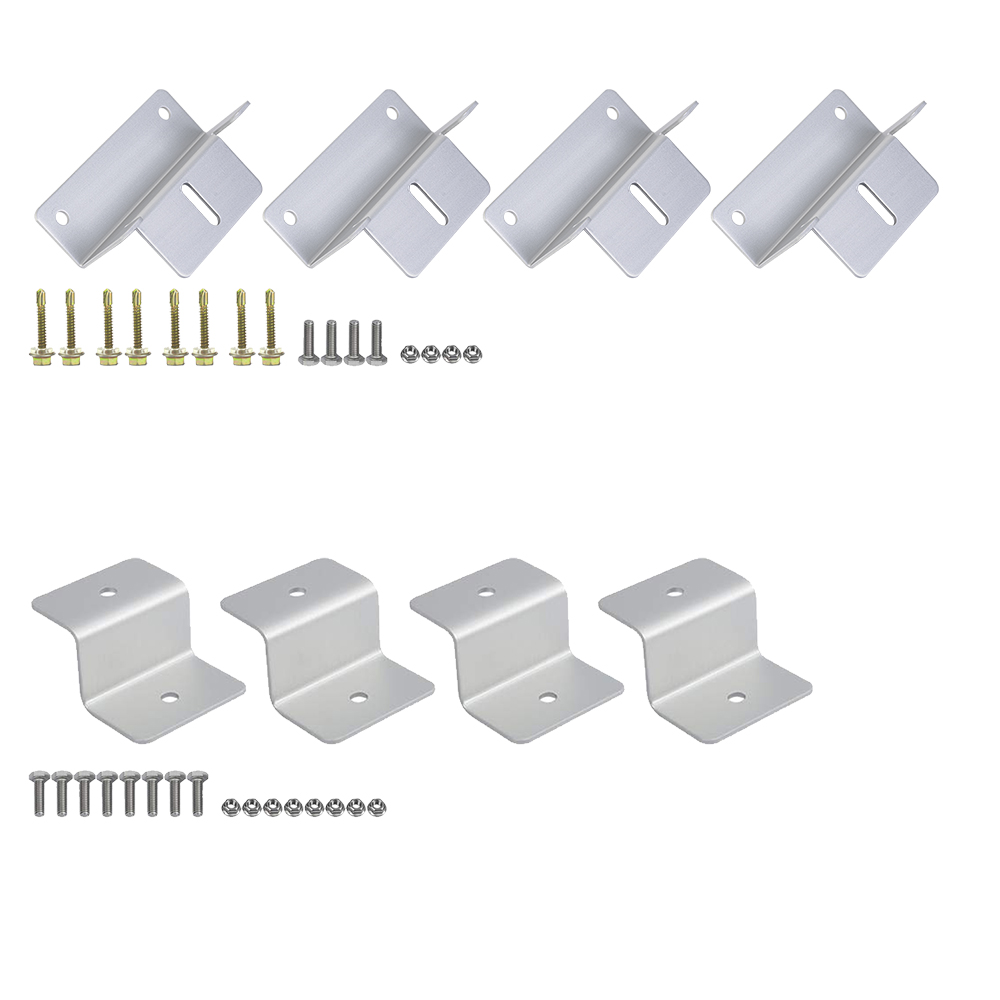 ECO-WORTHY Adjustable/Roof/RV/Tracking Multi-Piece Solar Panel Mounting Brackets has the capability to fit 1-4 pieces of different size ECO-WORTHY panels or other brands standard panels. It's ideal for larger installations, such as ground, flat roof, cabins and backyard sheds. Anywhere roof mounting is not a possibility, this solar panel mount can be applied.