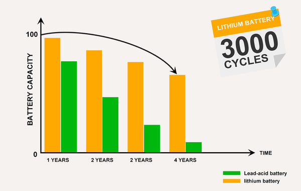 Cycle life of Lead-acid battery, ternary lithium battery and Lithium battery